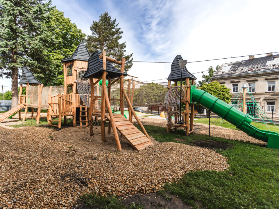 Dětské hřiště, to přeci nemusí být jen skluzavka, prolézačka a typizovaný, všude stejný vzhled. U nás v Hřišti hrou se snažíme tvořit originální, rozpoznatelná hřiště. Jedním takovým je dvouhlavý drak, který obsadil Slezskoostravský hrad!