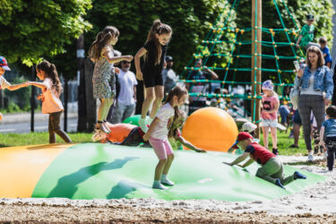 Nové hřiště je rozděleno do dvou propojených zón, které myslí jak na malé děti, tak na ty starší. Nabízí kombinaci různých herních prvků – například Jelly Bubbles, pružinových houpadel, síťové pyramidy nebo oblíbené kuličkodráhy. Výrazným prvkem je válečková dráha Jelly Rolls, po které se dítě sveze v měkkém vaku. Nechybí ani sedm různých typů houpaček, včetně vahadlové a pružinové, které pokrývají celé věkové spektrum.