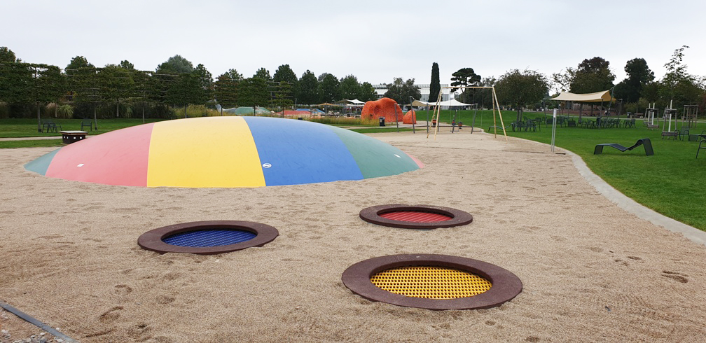 Dalším aspektem při výběru prvků na hřiště by měla být barevnost. Nejmenší děti reagují na zářivé barvy a tradiční dřevěné hřiště pro ně může být tak trochu nuda. To na hřišti se vzduchovými trampolínami nebo hopsacími balóny nehrozí. Tyto prvky svítí do dálky jasnými barvami, které nevyblednou ani na slunci, a na rozdíl od dřevěných prvků je není potřeba natírat. Nejmenší děti tak zaujmete na první pohled a vytvoříte netradiční hřiště, třeba v barvách obce nebo firmy.