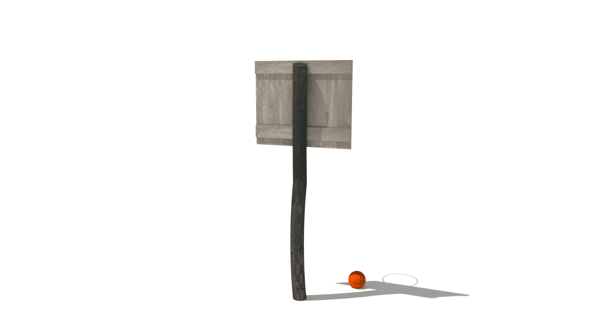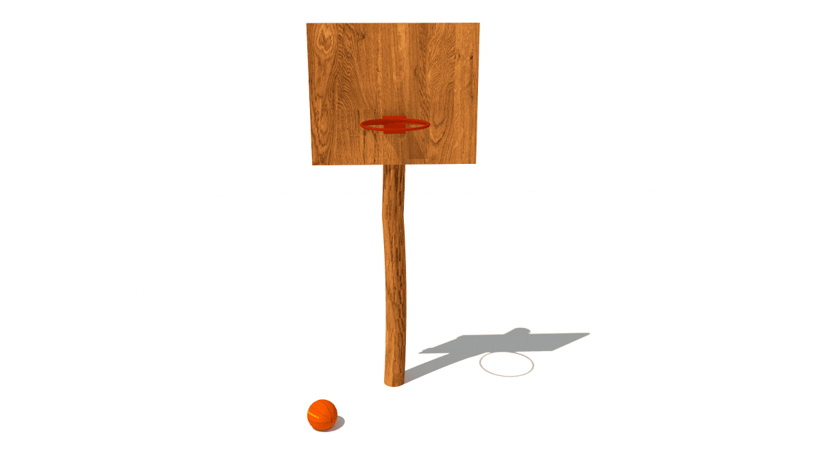 Dřevěný dětský prohazovací sportovní prvek, basketbalový koš, vyrobený z akátového a dubového dřeva.