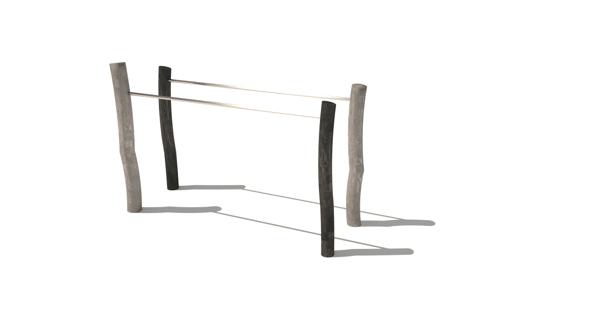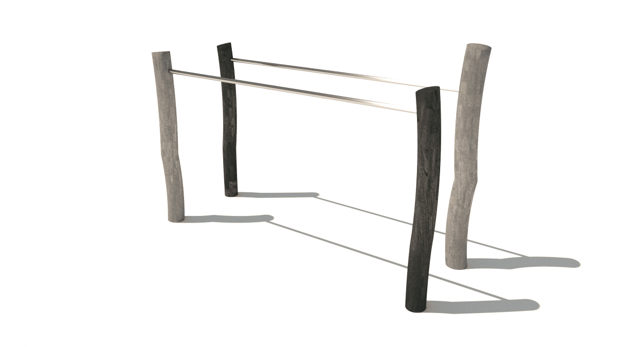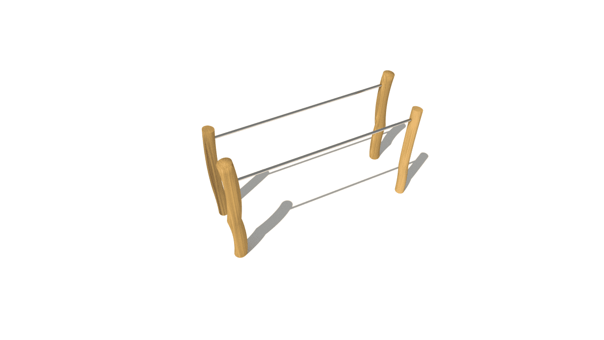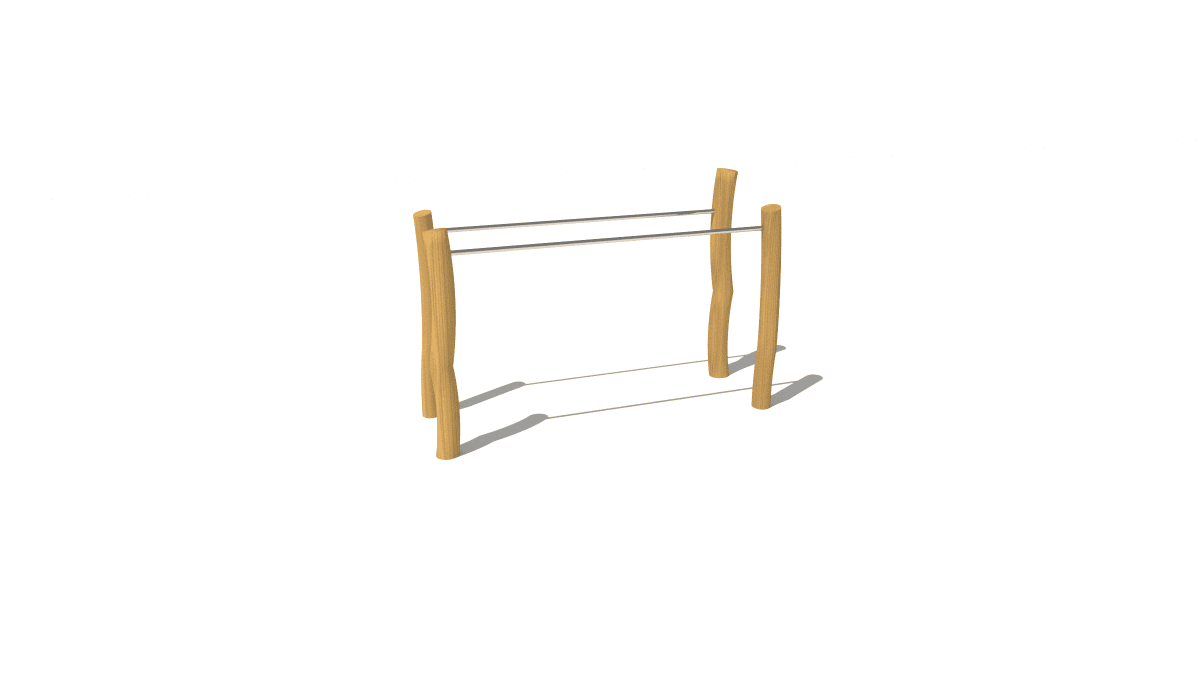Dřevěná venkovní posilovna bradla, vyrobená z akátového a dubového dřeva.