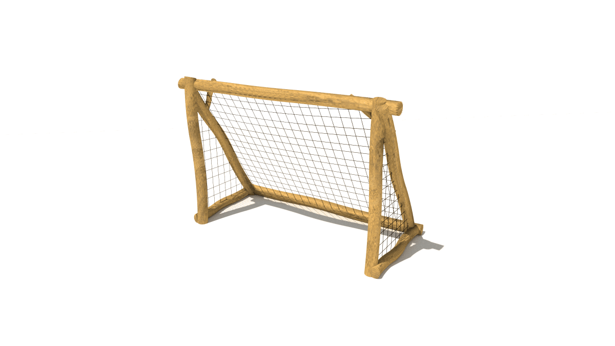 Dřevěná venkovní fotbalová branka, vyrobená z akátového a dubového dřeva.