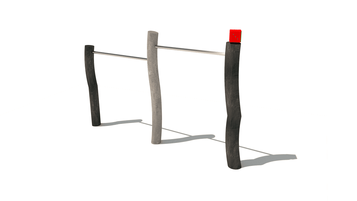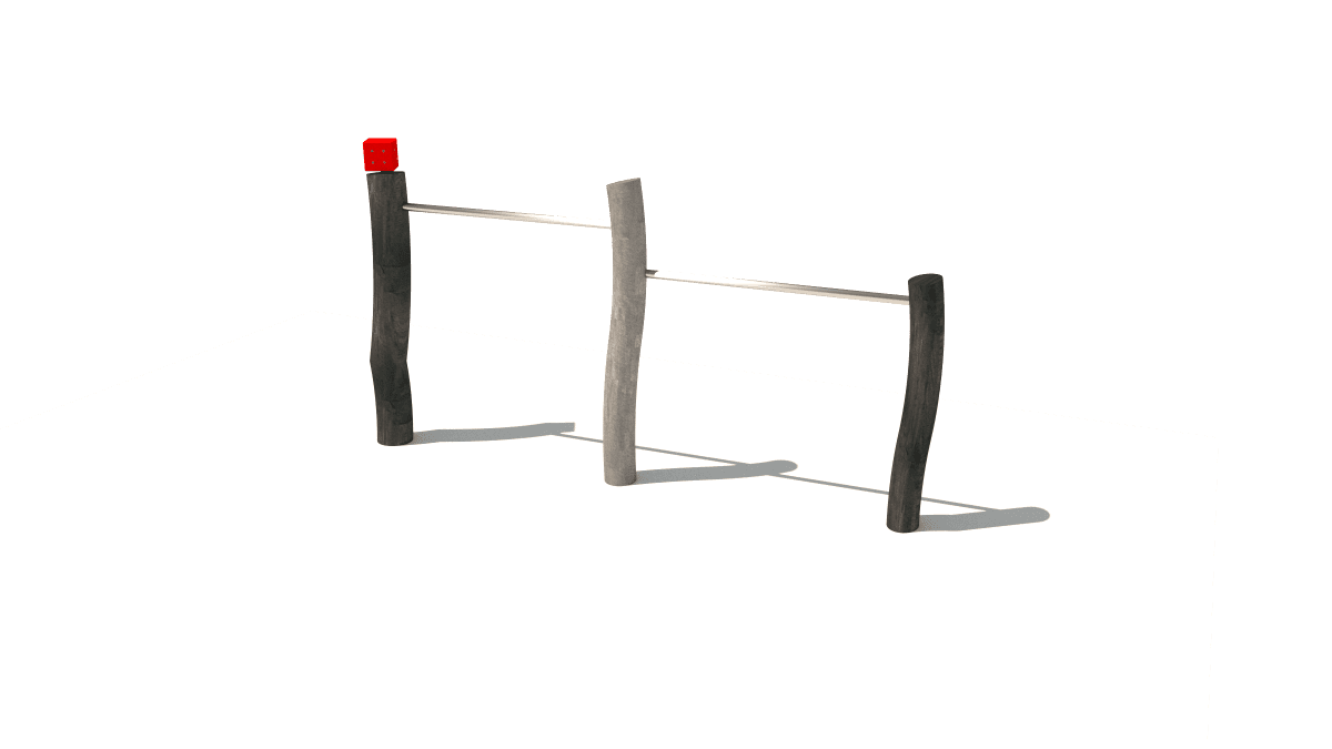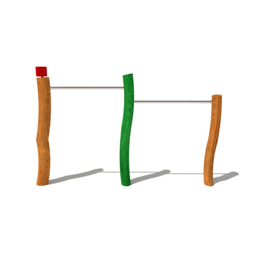 Dřevěný dětský sportovní prvek dvojitá hrazda, vyrobený z akátového a dubového dřeva.