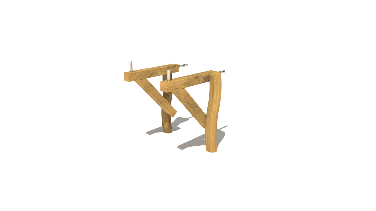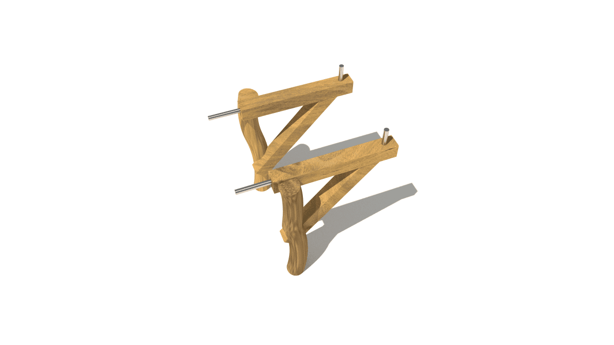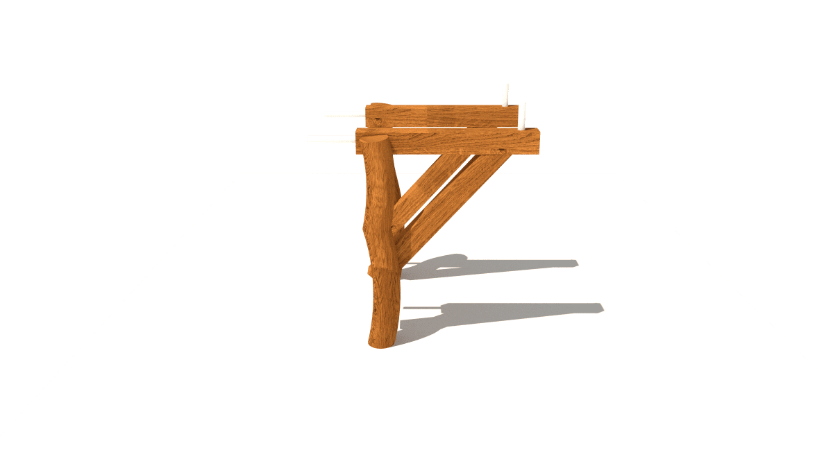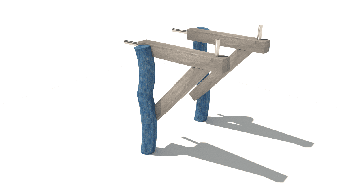 Dřevěná venkovní posilovna s kruhy a žebřinami, vyrobená z akátového a dubového dřeva.