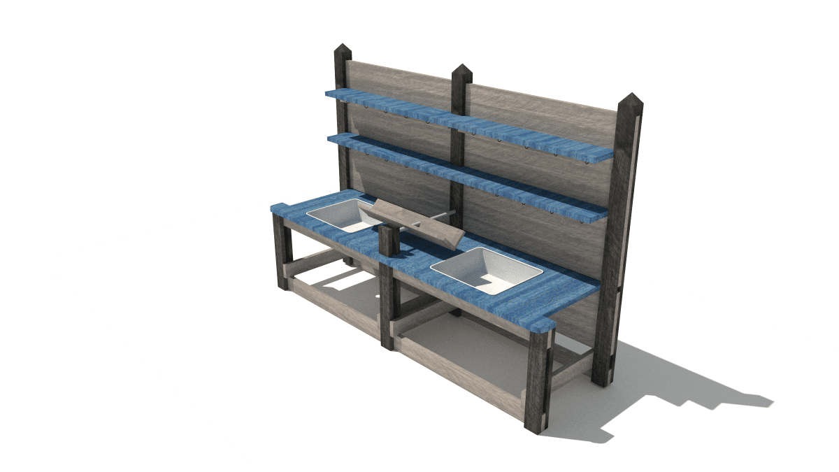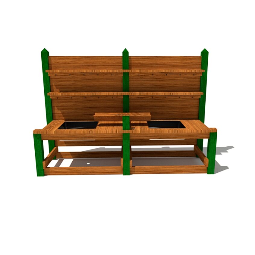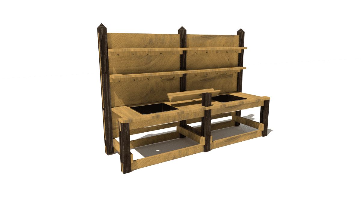 Dřevěné Herní prvek kuchyňská linka, vyrobené z akátového a dubového dřeva.