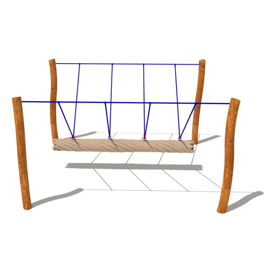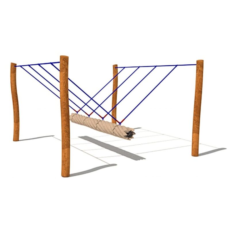 Dětská lanová sestava s balančními prvky, vyrobená z akátového a dubového dřeva.