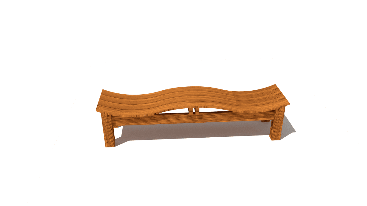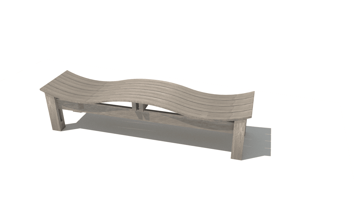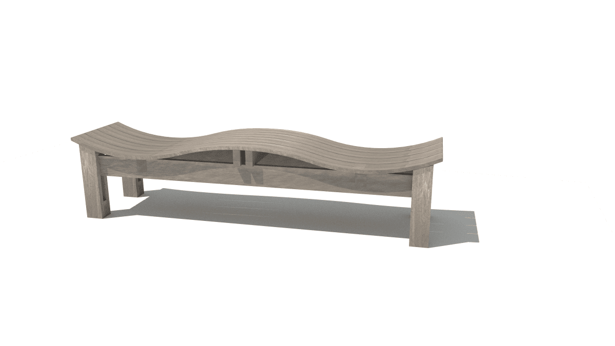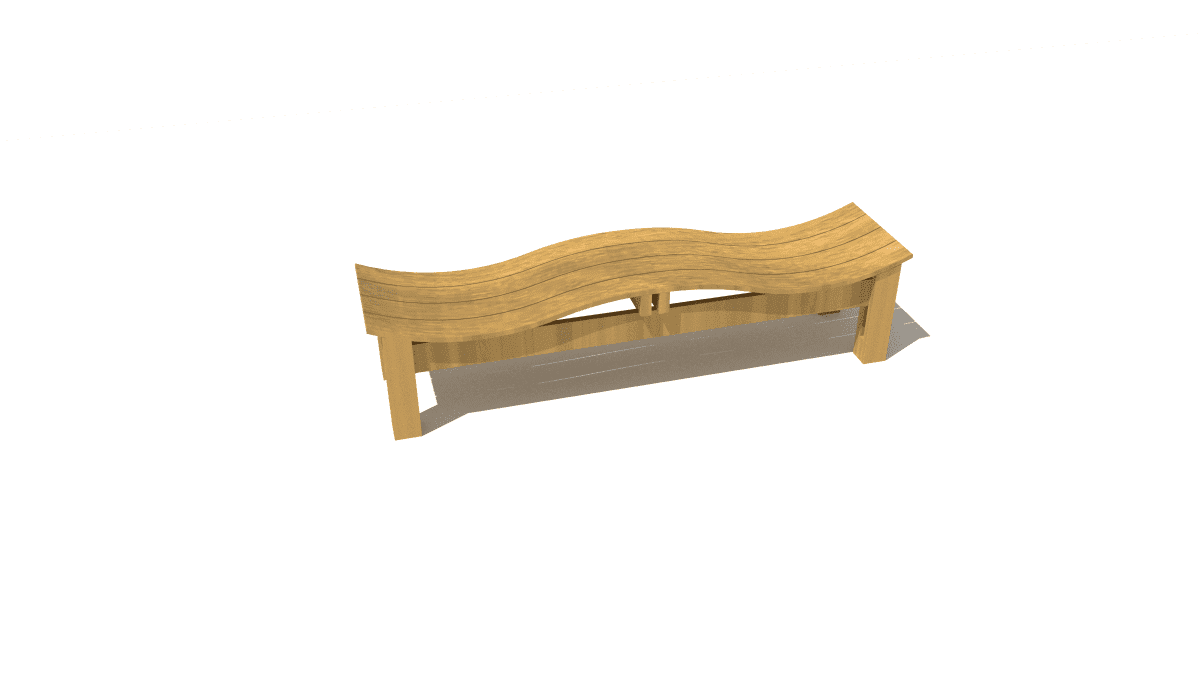 Dřevěná lavička vlnitá, vyrobená z akátového a dubového dřeva.