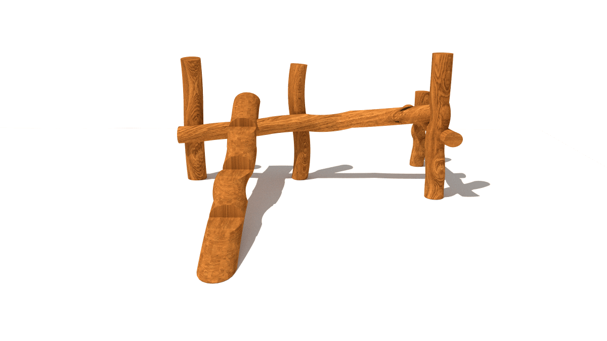 Dětská dřevěná malá prolézačka balanční kladiny, vyrobená z akátového a dubového dřeva.
