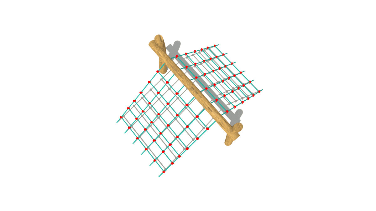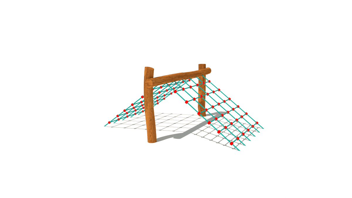 Dětská dřevěná malá prolézačka se šplhacími sítěmi, vyrobená z akátového a dubového dřeva.