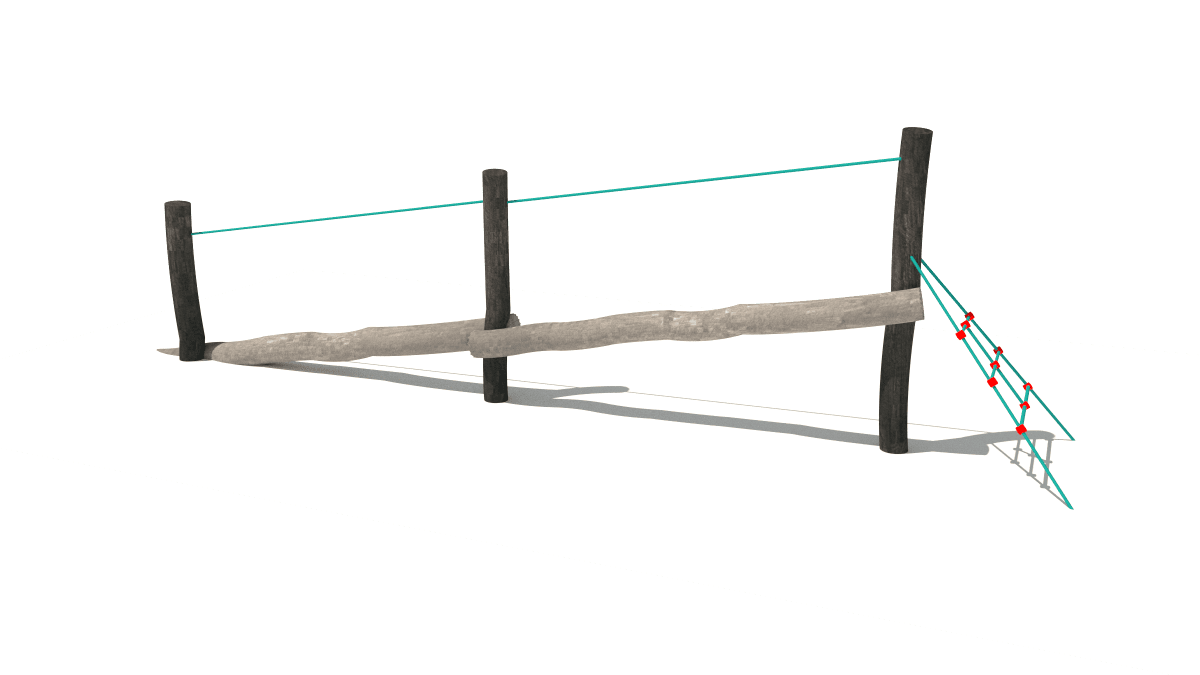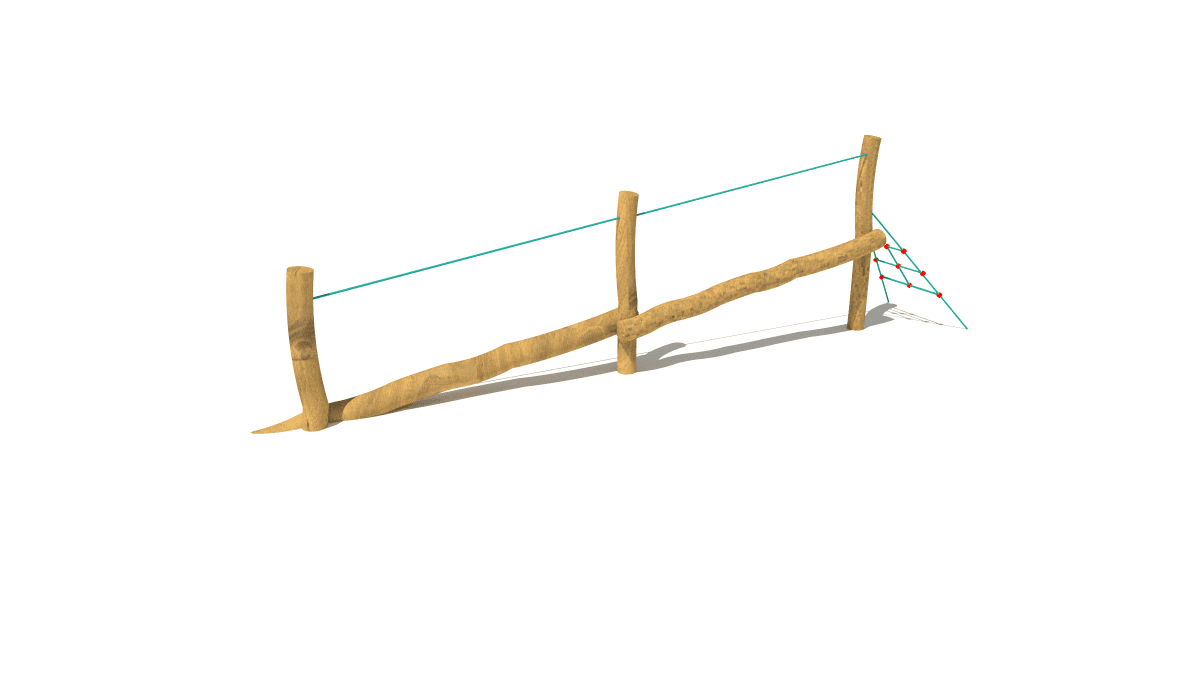 Dětská dřevěná malá prolézačka s nakloněnou balanční kladinou, vyrobená z akátového a dubového dřeva.