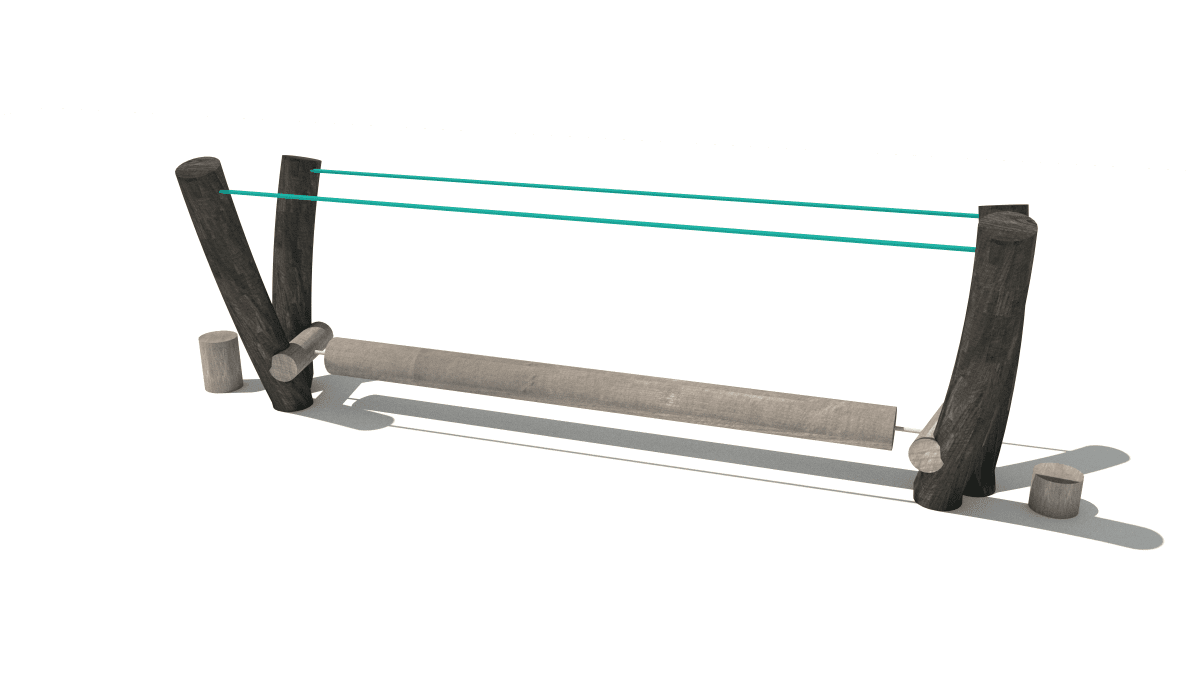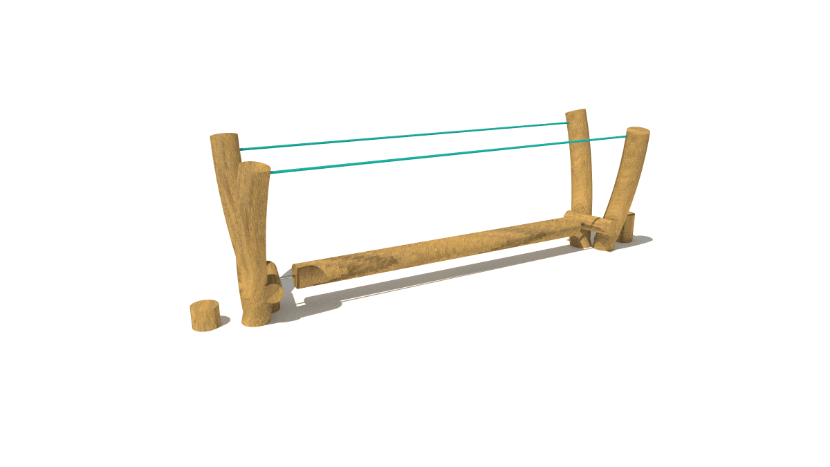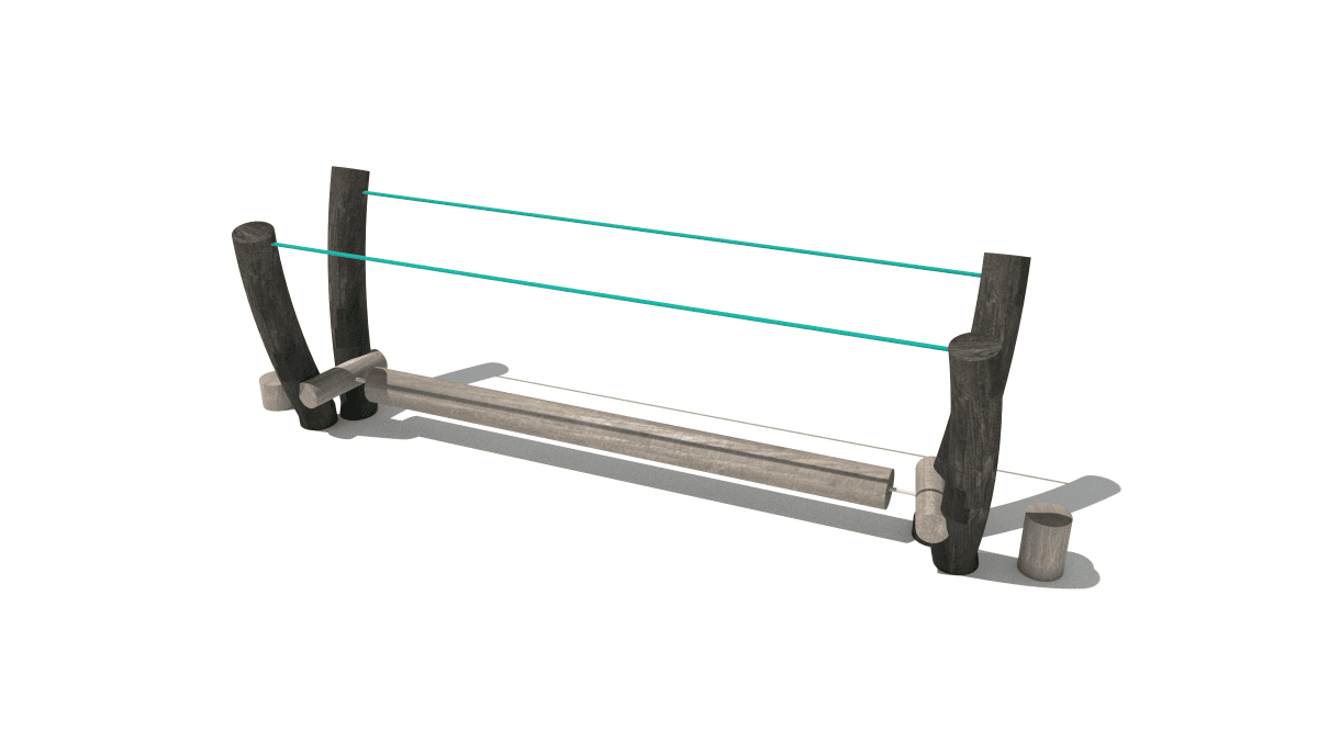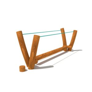 Dětská dřevěná malá prolézačka s balanční kladinou a lany pro držení, vyrobená z akátového a dubového dřeva.