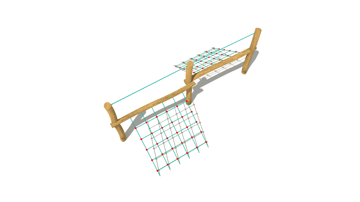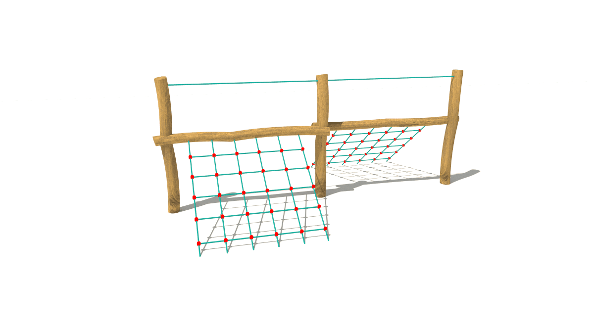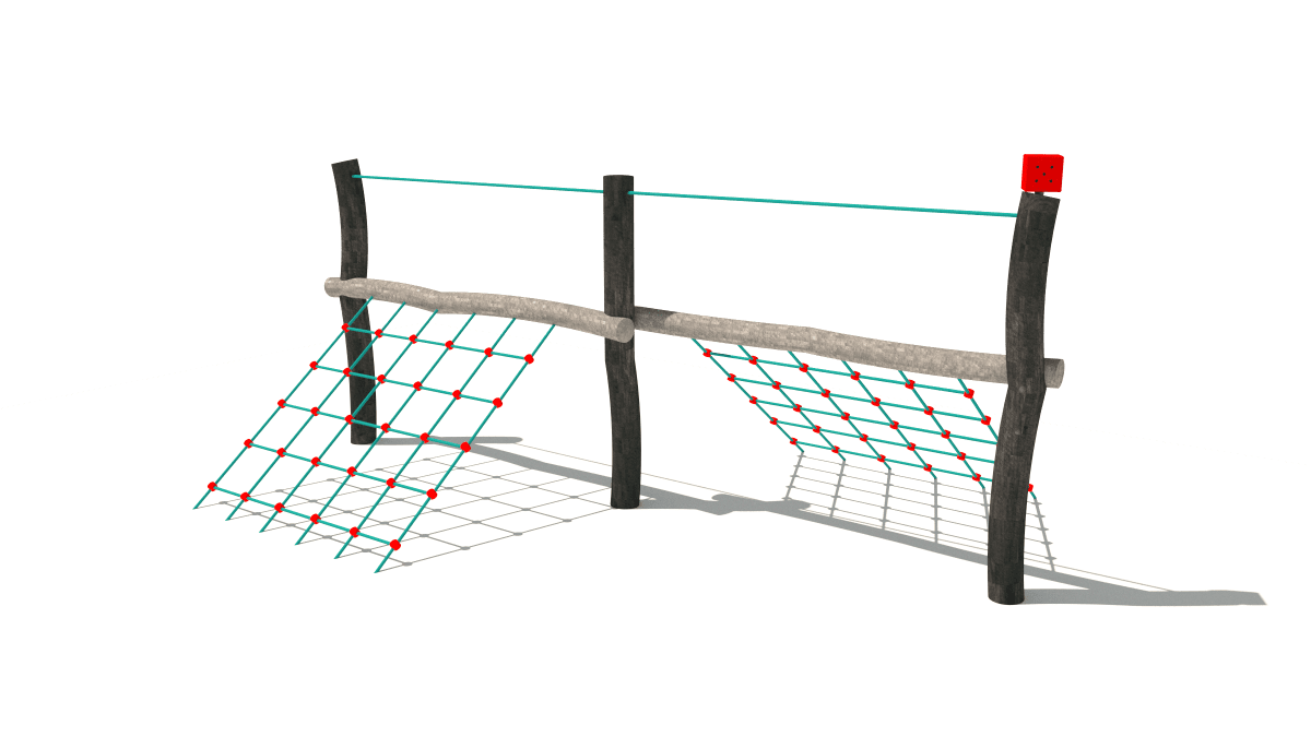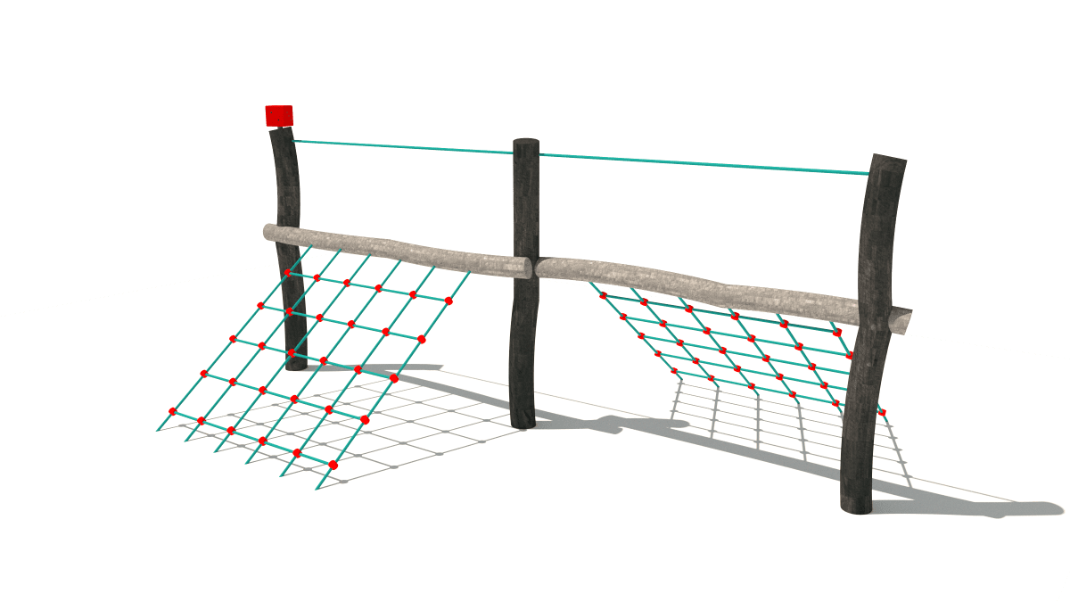 Dětská dřevěná malá prolézačka se šplhací sítí, vyrobená z akátového a dubového dřeva.