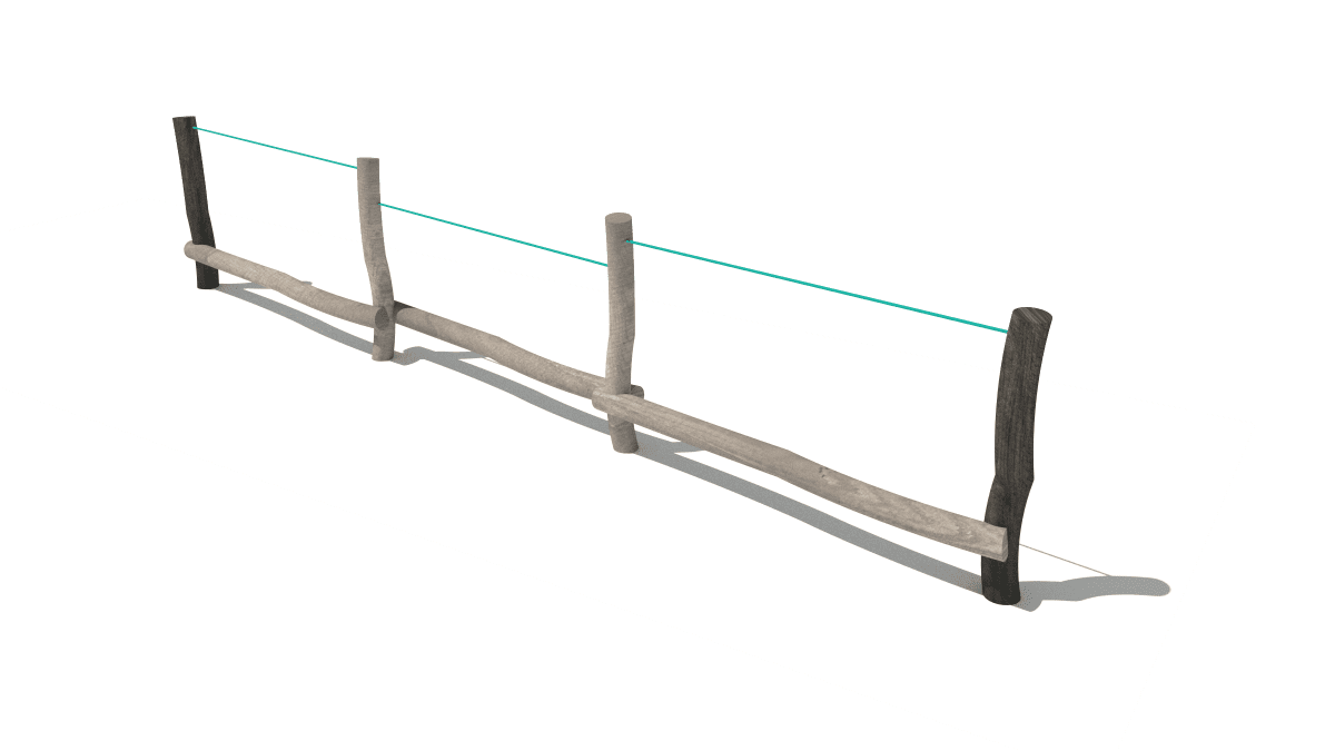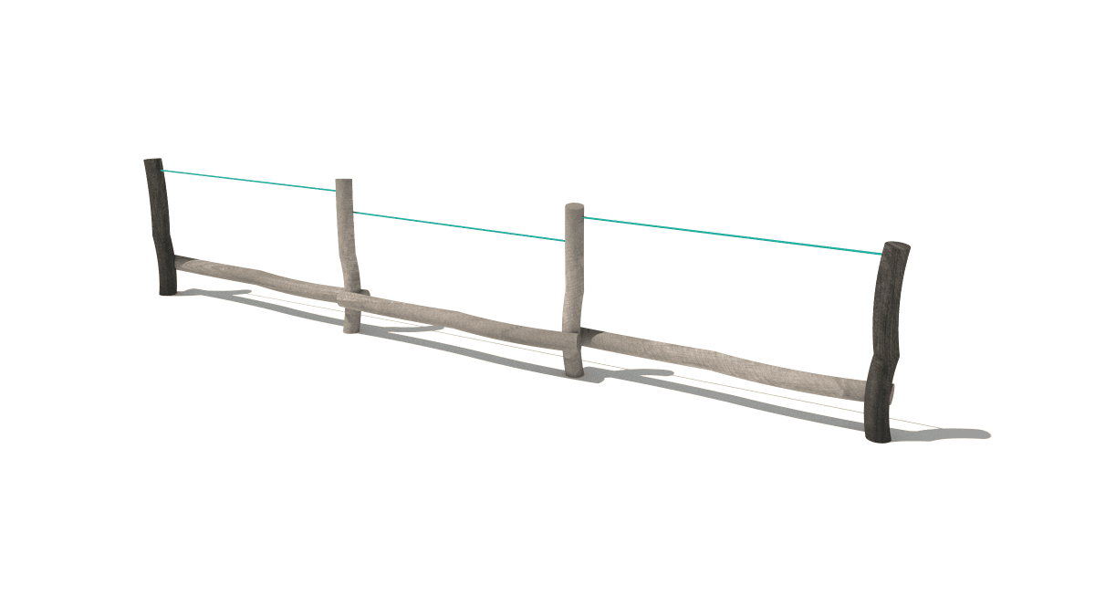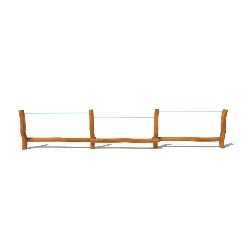 Dětská dřevěná malá prolézačka dlouhá balanční kladina, vyrobená z akátového a dubového dřeva.