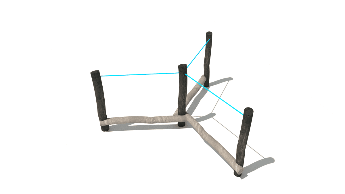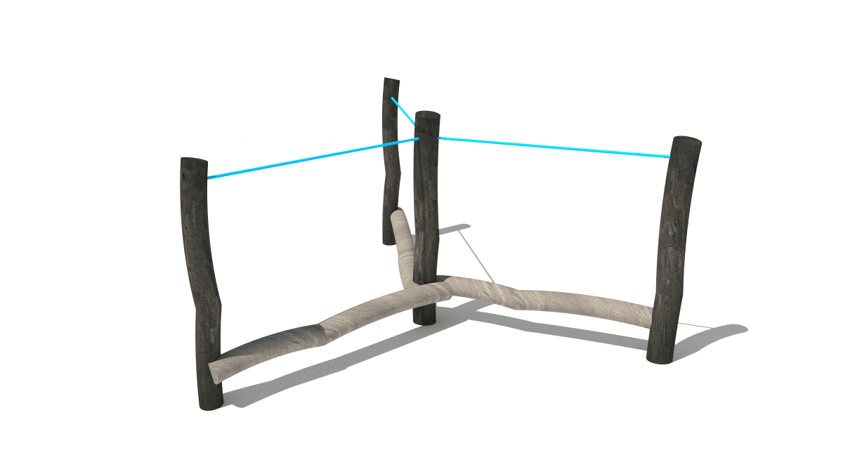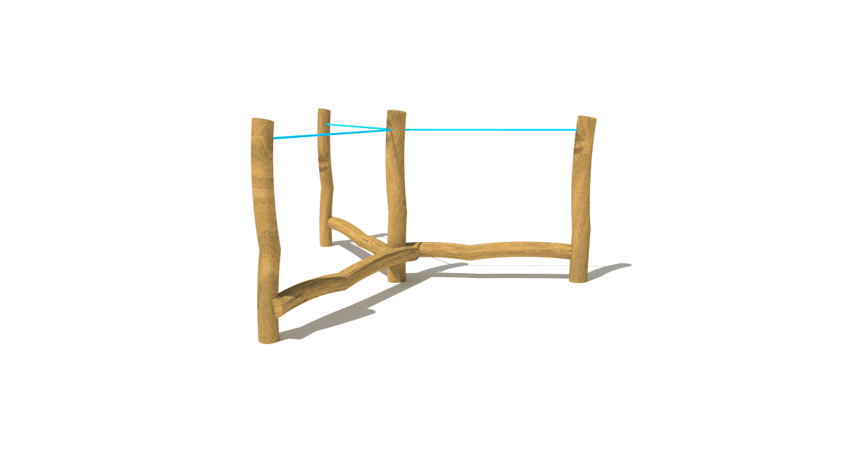 Dětská dřevěná malá prolézačka balanční kladiny, vyrobená z akátového a dubového dřeva.