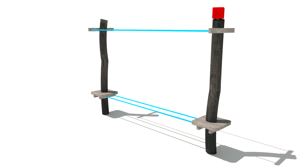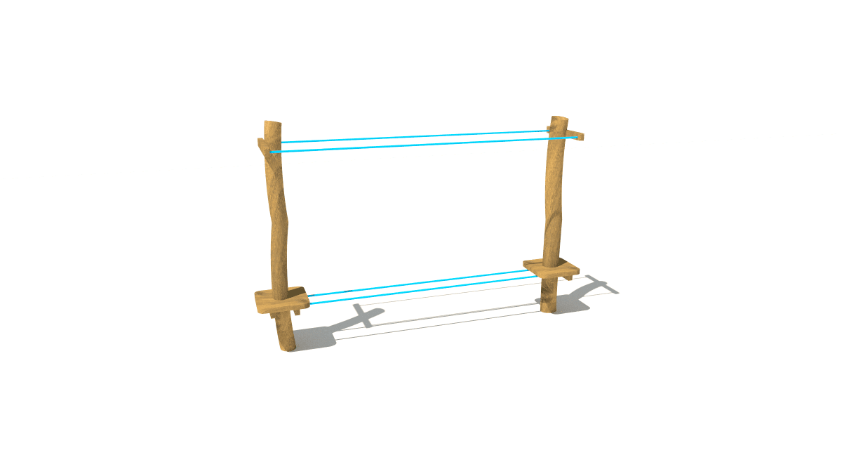 Dětská dřevěná malá prolézačka balanční přechod po lanu, vyrobená z akátového a dubového dřeva.