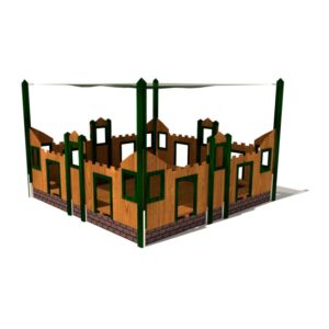 Dřevěné dětské čtvercové pískoviště hrad s plachtou na kůlech, vyrobené z akátu a dubu.