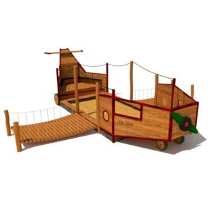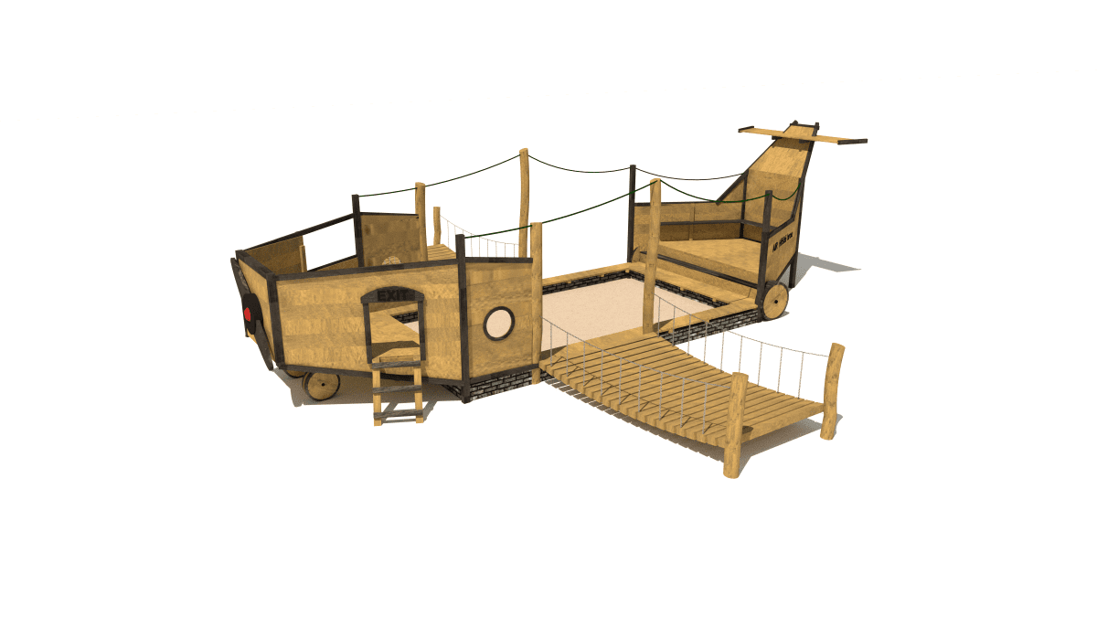 Dřevěné dětské pískoviště letadlo, vyrobené z akátu a dubu.