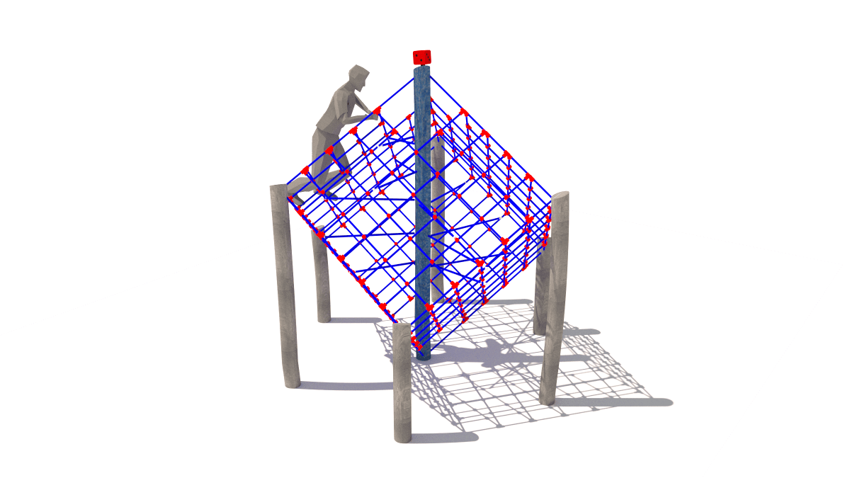 Dřevěná dětská prolézačka s lezecí sítí ve tvaru krychle, vyrobená z akátového a dubového dřeva