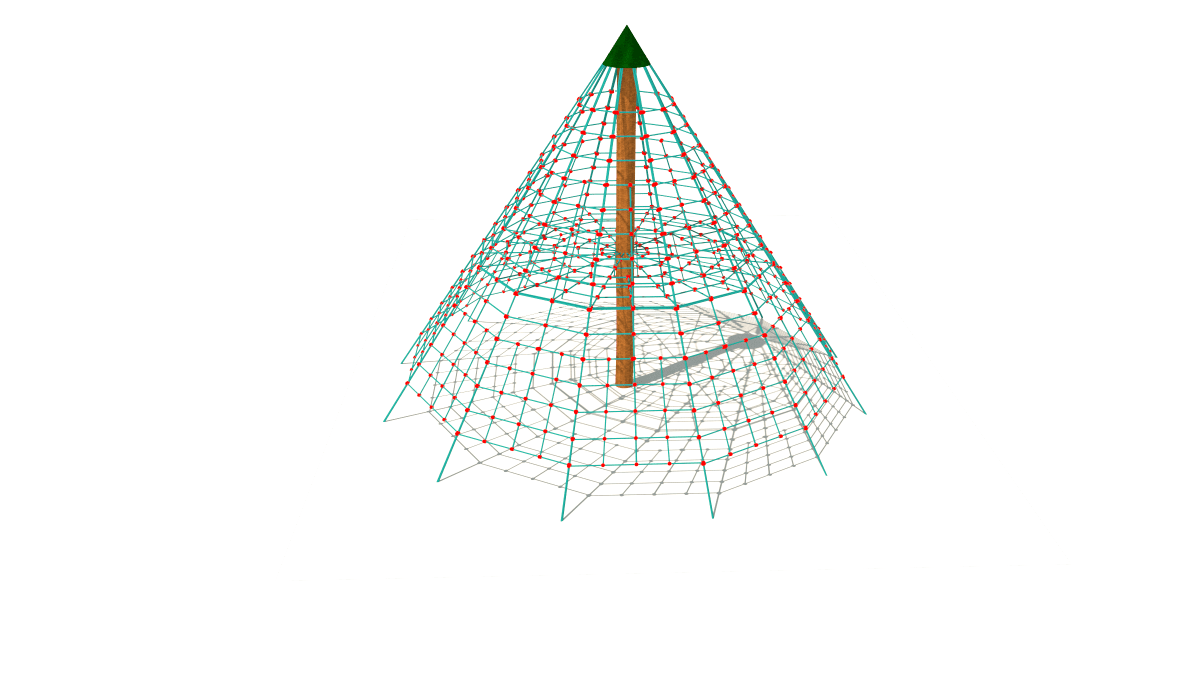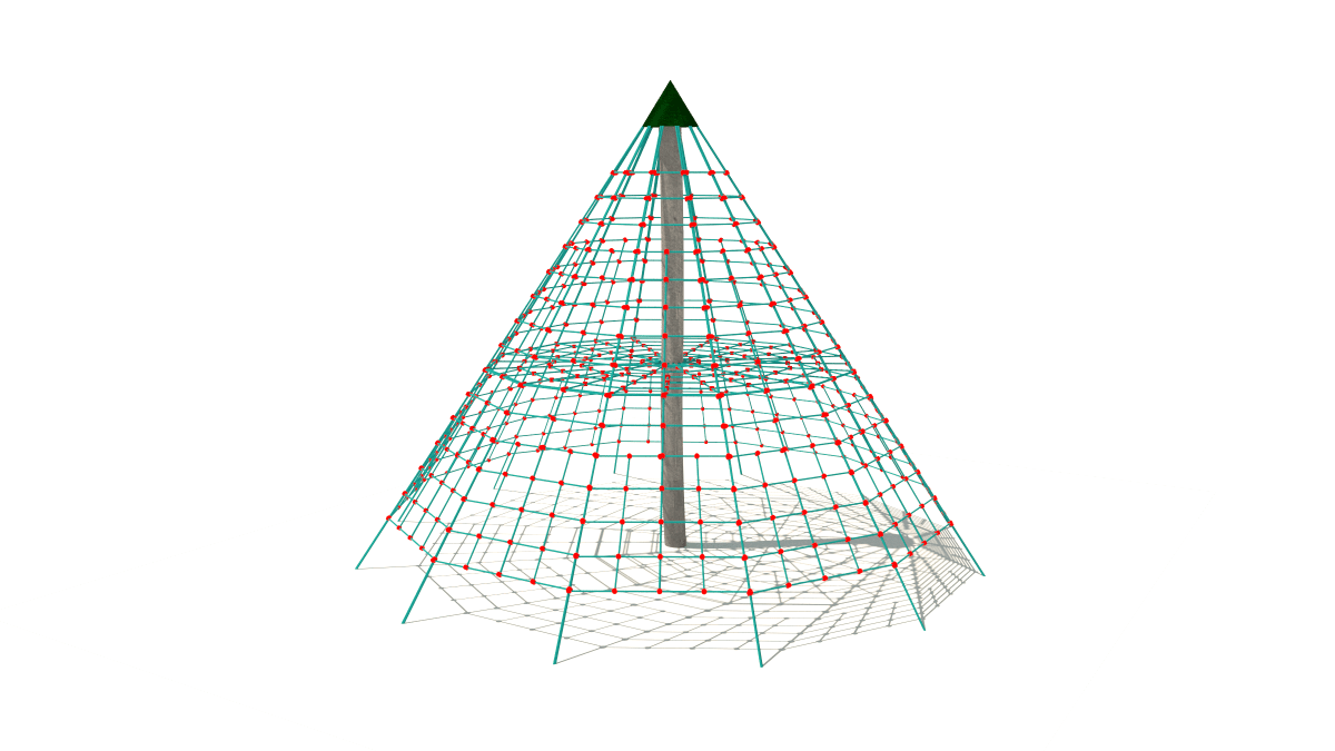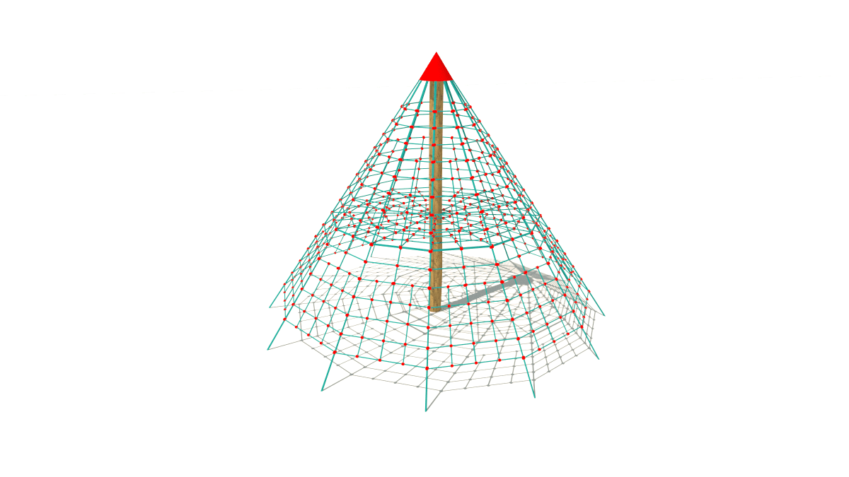Dětská dřevěná síťová prolézačka pyramida na šplhání, vyrobená z akátového a dubového dřeva.