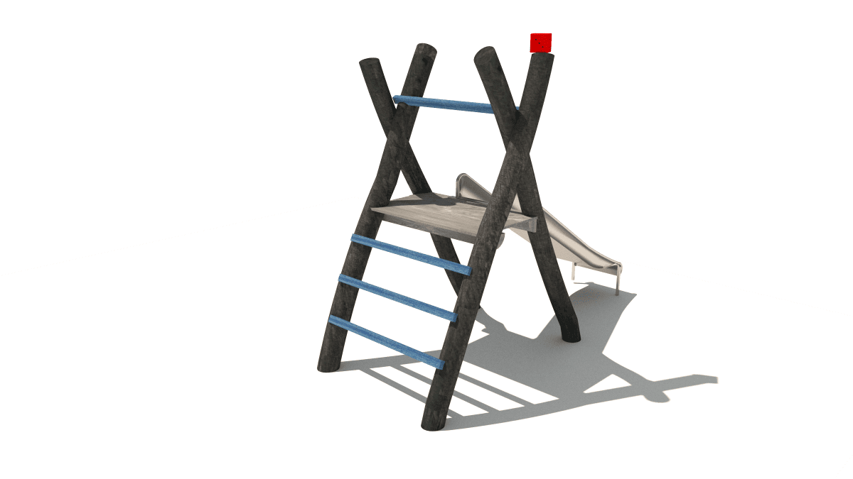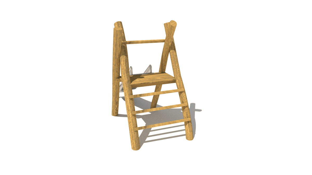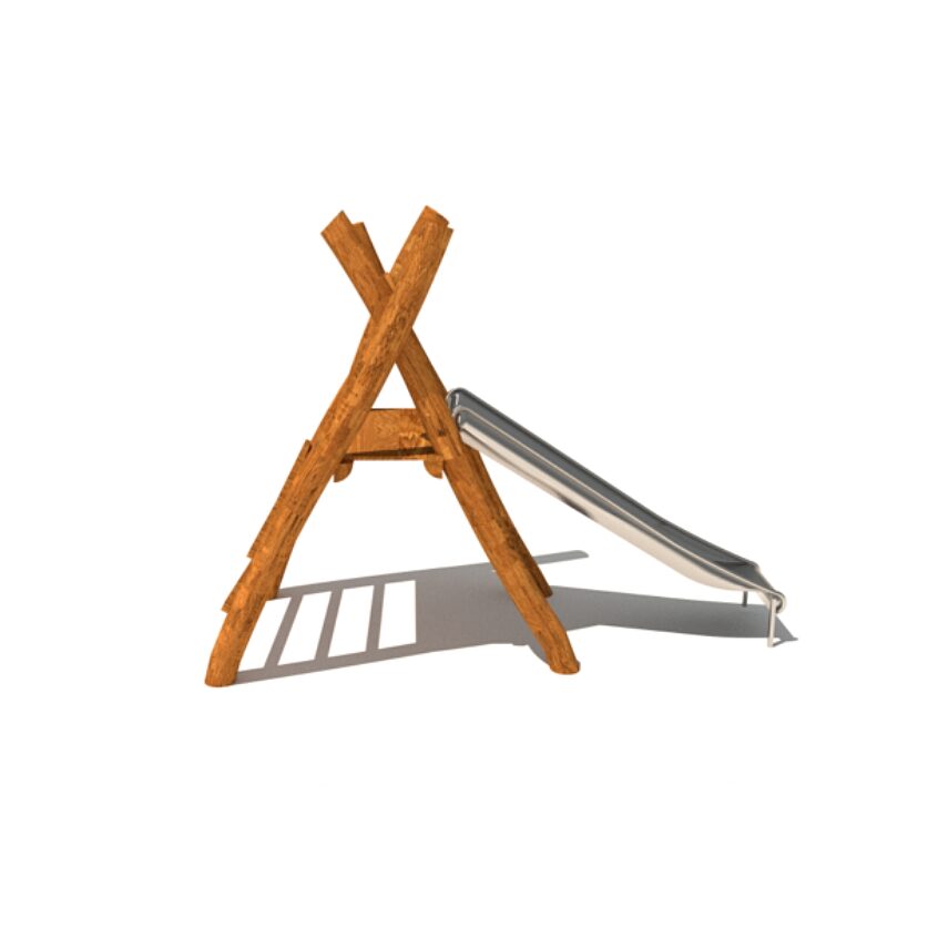 Dětská skluzavka z věžičky, vyrobená z akátového a dubového dřeva.