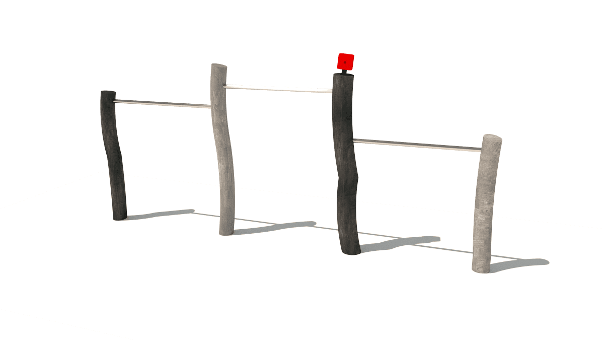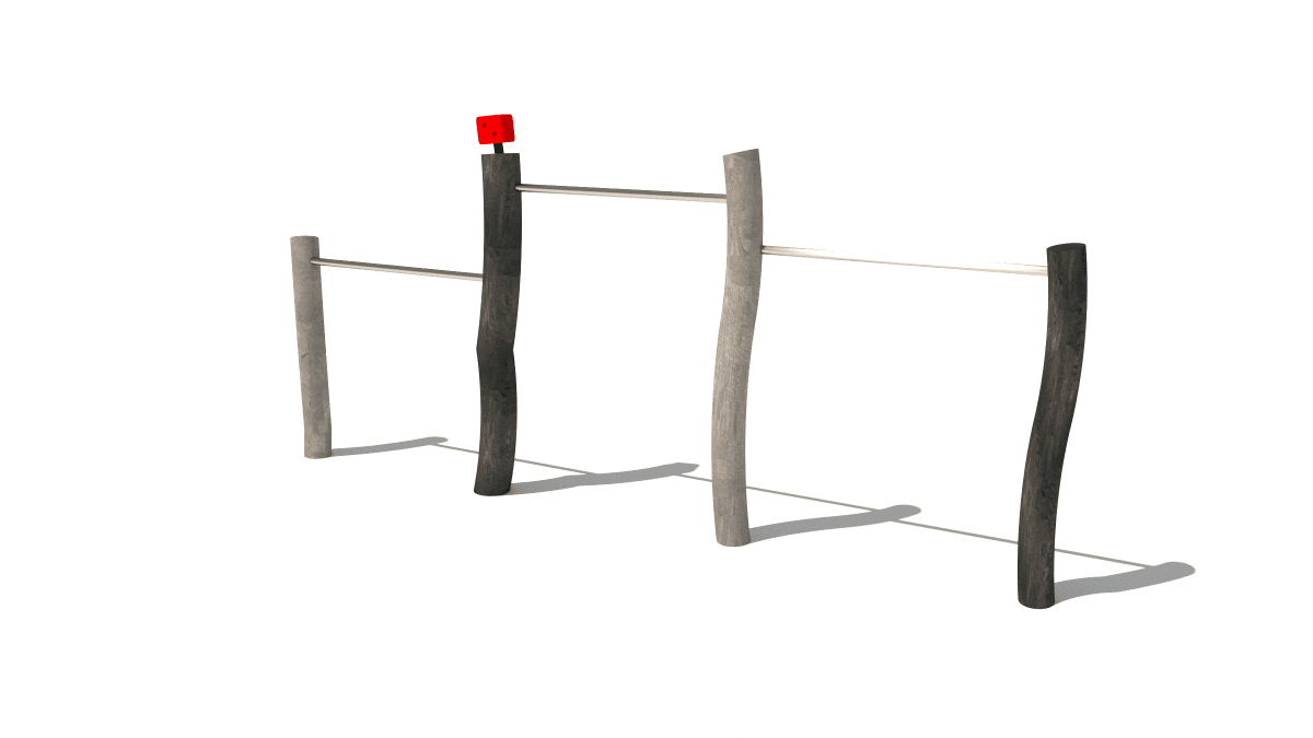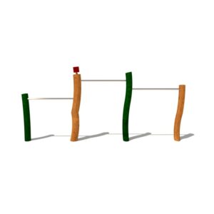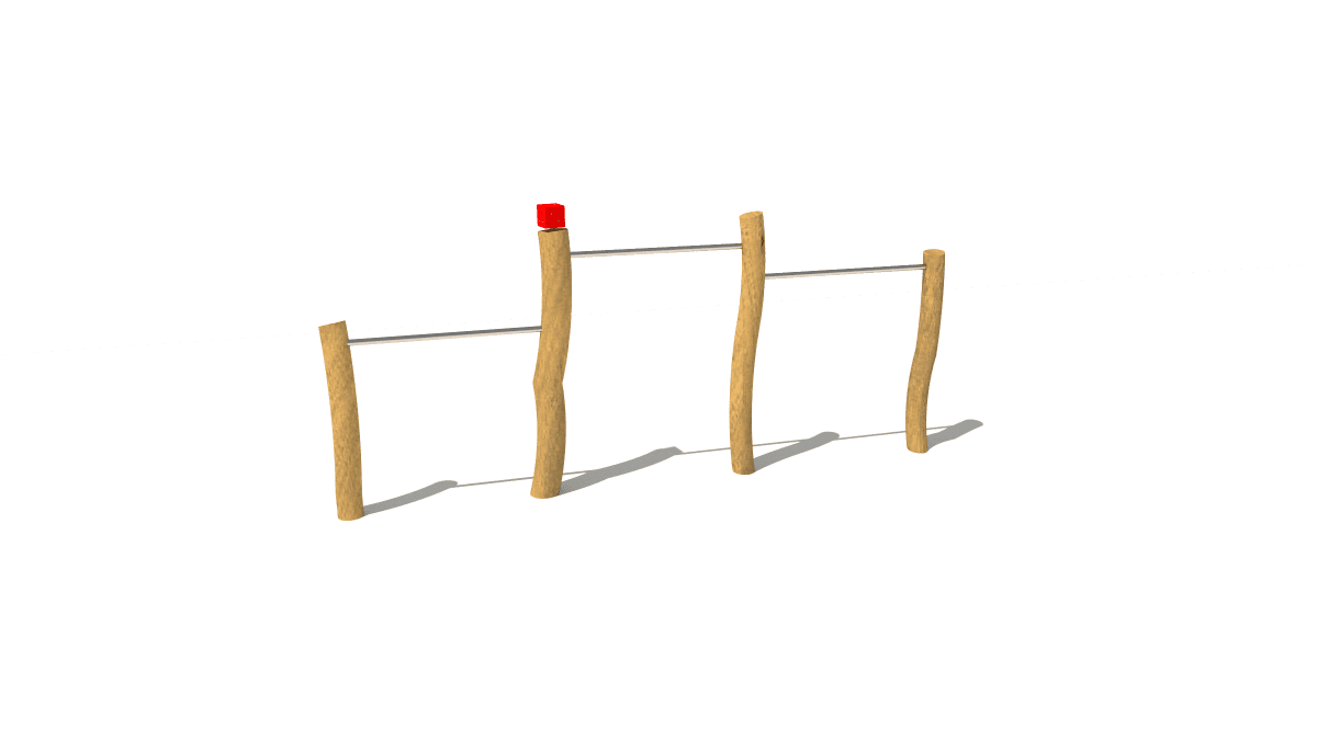 Dřevěný dětský sportovní prvek trojitá hrazda, vyrobený z akátového a dubového dřeva.