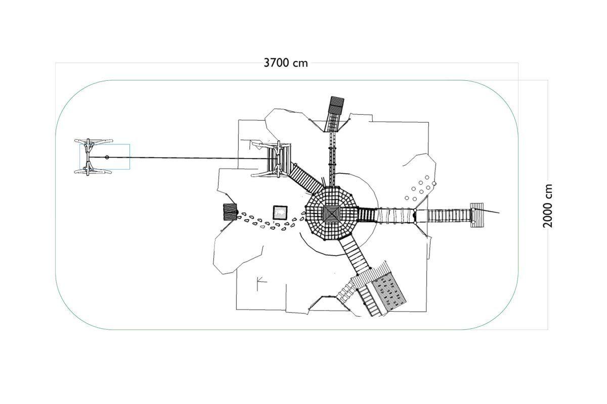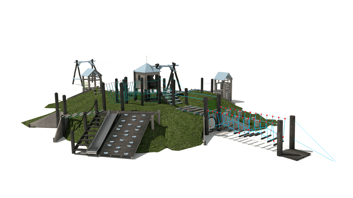 nerezová skluzavka, sítě z PP lan 16 mm s ocelovým jádrem, plastové tubusy, zemní práce a zemina na zásyp nejsou součástí dodávky