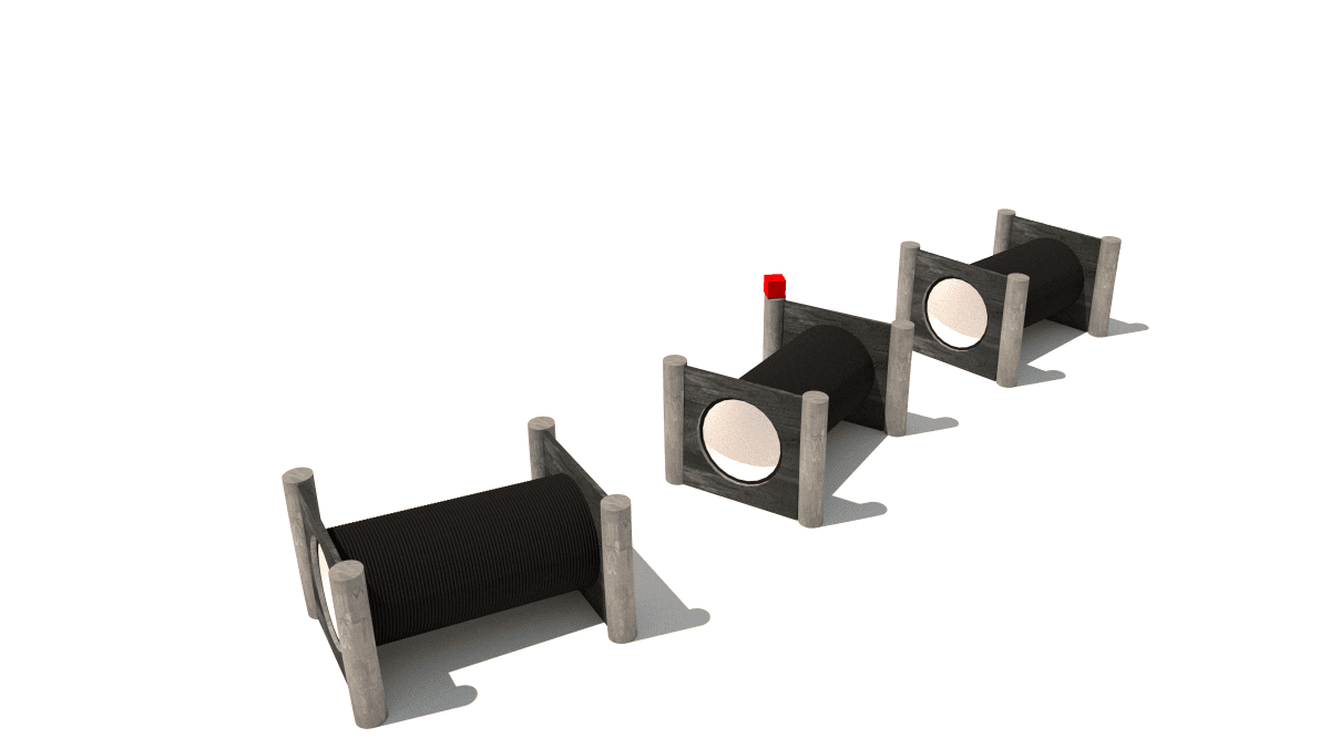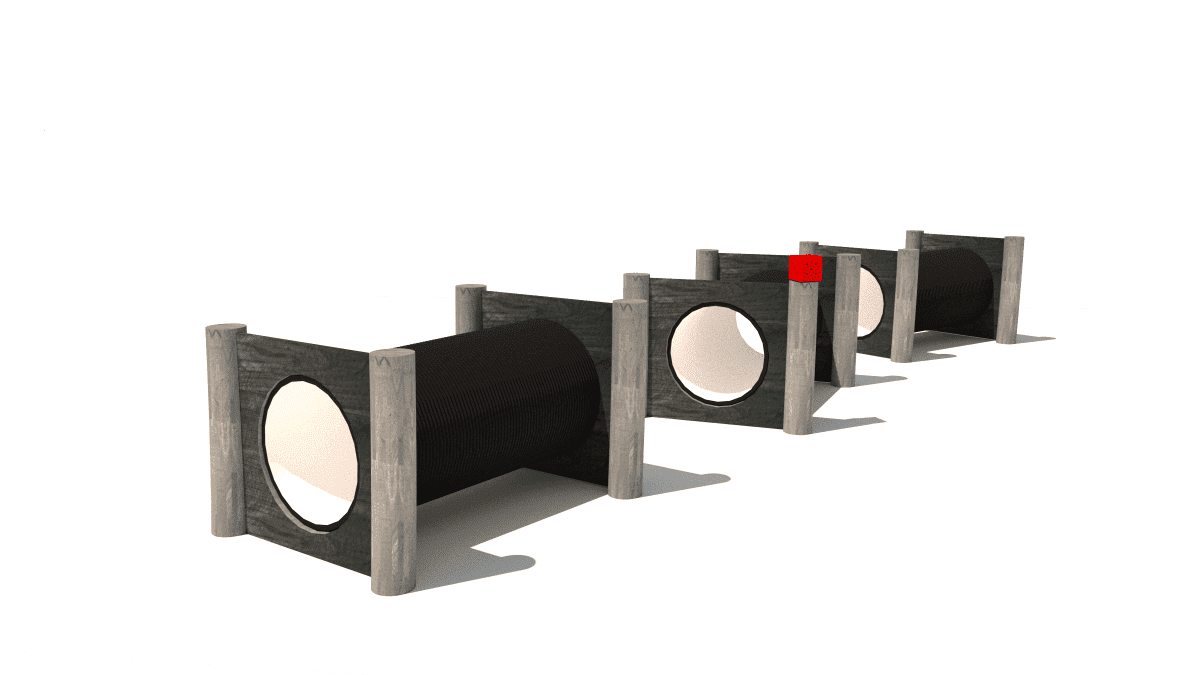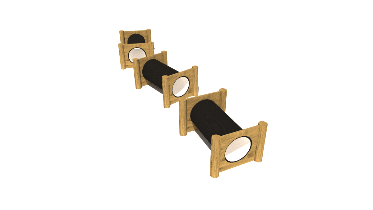 Dřevěná dětská tunelová sestava pro prolézání, čela vyrobená z akátového a dubového dřeva.