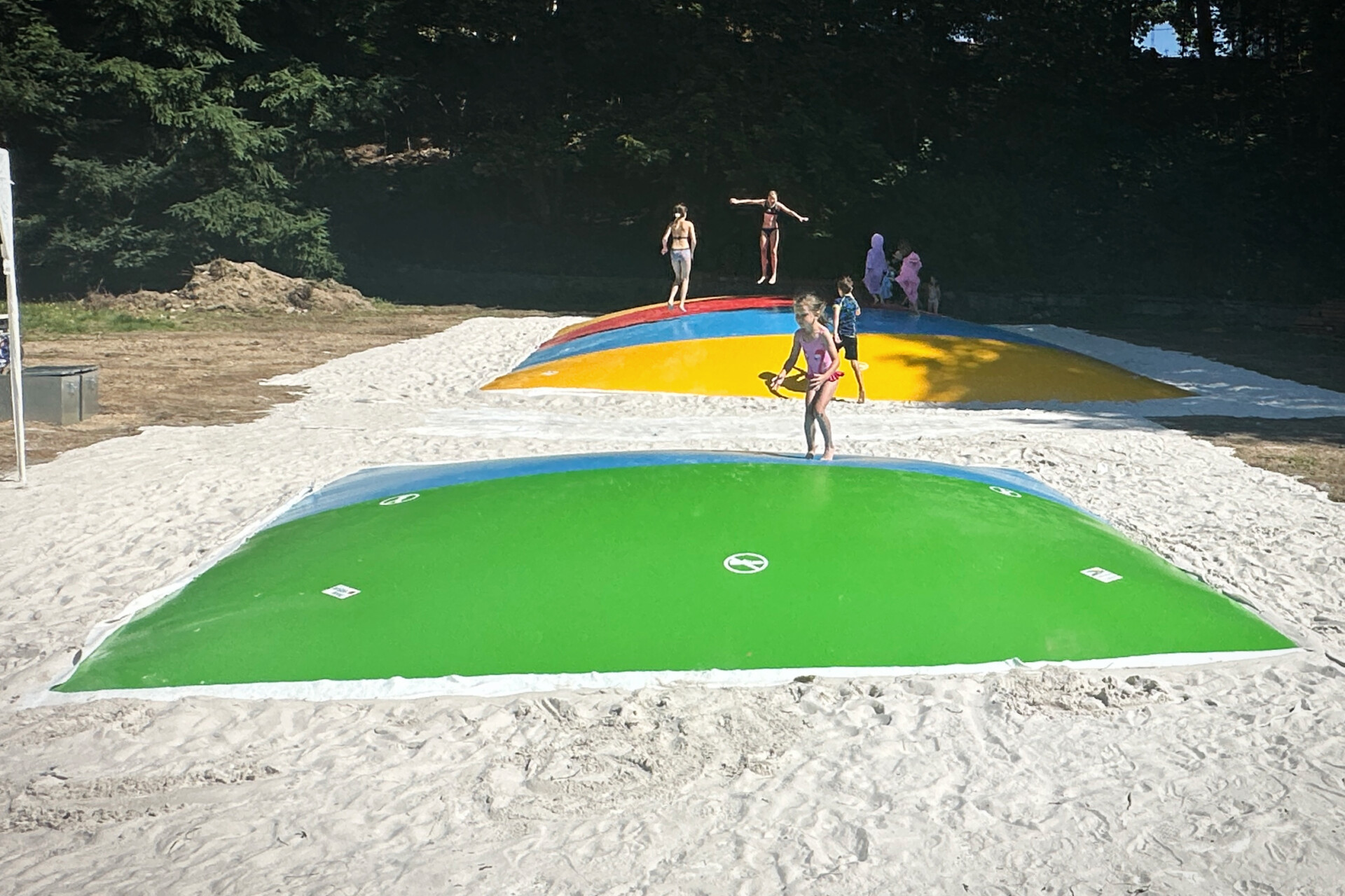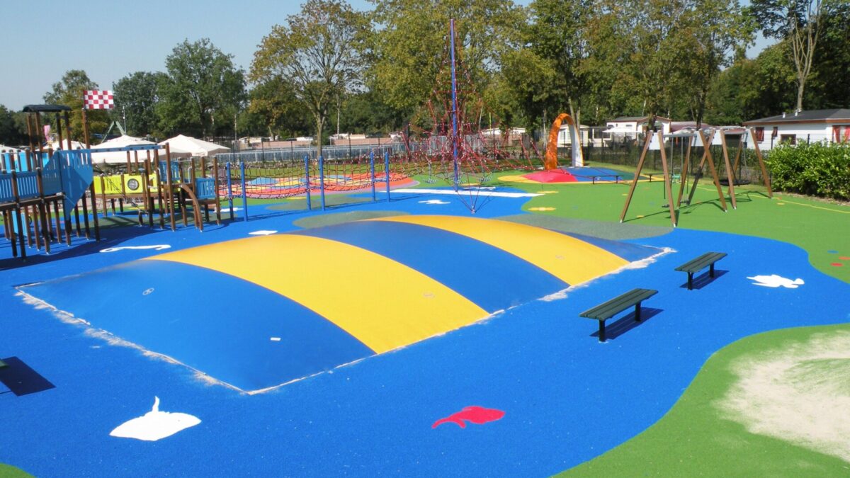 Vzduchové trampolíny se báječně hodí do kempů u rybníka nebo hotelů s bazénem. Díky měkkému povrchu na nich děti můžou řádit klidně v plavkách a bez bot. Jako dopadová plocha se obvykle používá kačírek nebo jemný písek. Trampolíny tak mohou přirozeně navazovat na vaši pláž.
